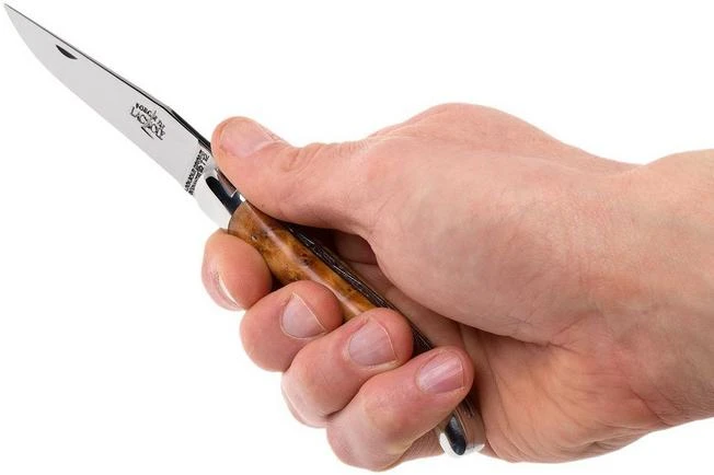 The Forge de Laguiole knives are made with love. This classic French pocket knife has all features of a Laguiole knife: the shepherd’s cross in the handle and, of course, the characterizing bee. The handmade pocket knife looks slim. Because of the manual labour and the natural materials used each pocket knife is unique. There are many Laguiole pocket knives on sale, but only a few have the quality and look and feel of Forge de Laguiole. With a knife such as this you show class and taste.