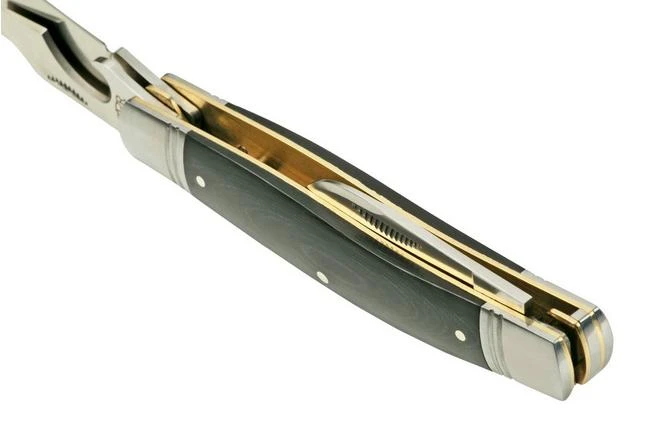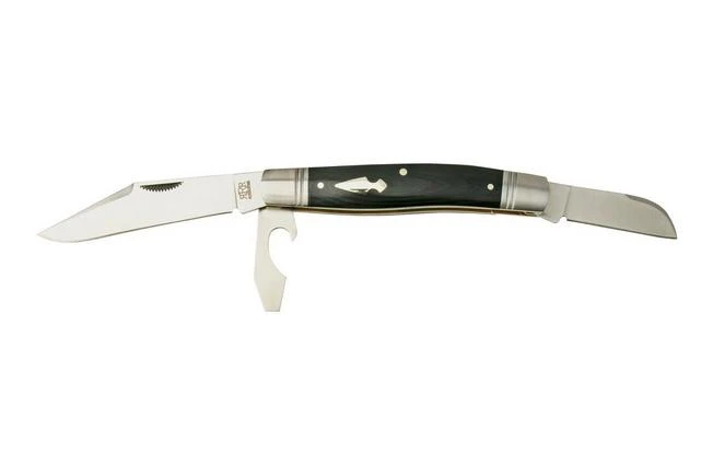 The Rough Ryder Reserve Common Stock is a cool, traditional pocket knife in the stockman pattern. The knife features three tools. Two blades, one with a sheepsfoot shape and one with a clip point shape, and a combination tool with a bottle opener and a flat screwdriver. Perfect for everyday use! Since neither of the blades feature a lock, this knife can legally be carried practically everywhere.