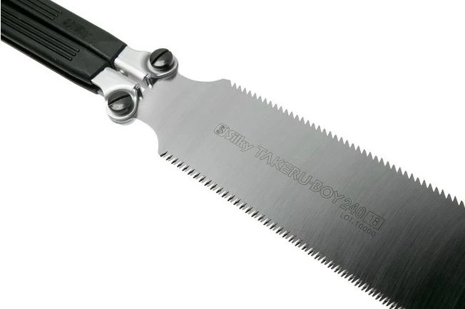 The Silky Takeruboy 240 18/10 is a traditional Japanese woodworking saw. The broad blade leaves you with accurate and straight cuts. This saw is also enhanced with serrations on both sides of the blade. Serrations to normally cut through the wood, and special serrations to score the wood. Both serrations were sharpened in the blade thickness, which leaves you with a thin edge, more precision and enables you to saw quicker. This Takeruboy is enhanced with a saw blade with medium serrations, and a saw blade with fine serrations.