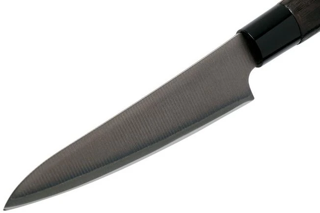 This Tojiro Zen Black Petty knife is the Japanese version of the paring knife. Slightly bigger, but perfect for the same purposes. Peeling, cutting and garnishing vegetables and fruit. But for those looking for a longer blade.